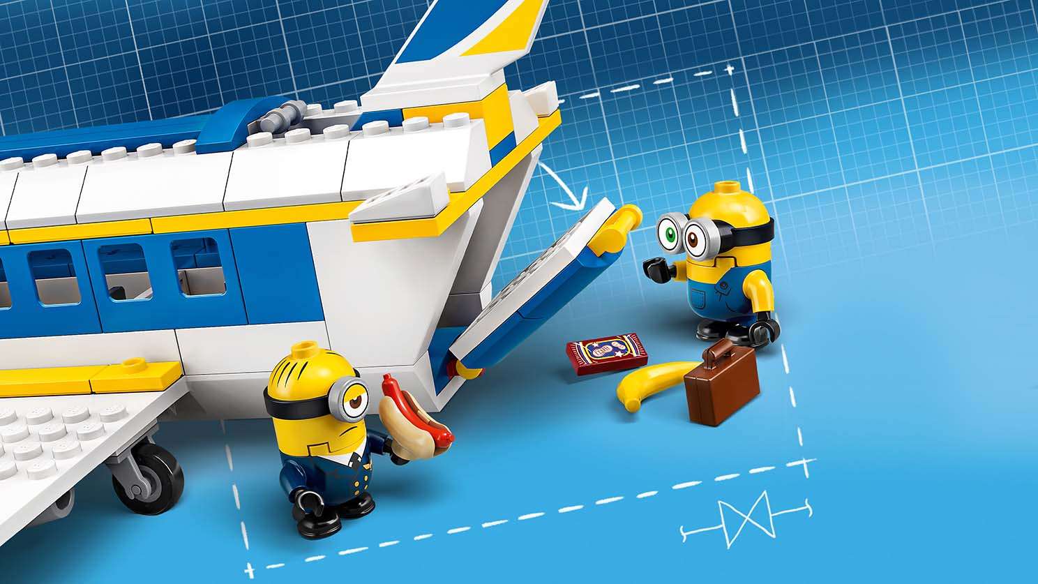 Wzbij się pod chmury z Minionkami LEGO, Bobem i Stuartem. Ci nieustraszeni bohaterowie wyruszyli samolotem, by uratować Gru. Stuart pilotuje, a Bob obsługuje pasażerów w kabinie. Oj, zapowiada się trudny lot. Uważaj, bo wypadki chodzą po Minionkach — można na przykład wpaść do toalety! Nie zapomnij wystrzelić z miotacza bąków — ależ będzie zabawa!